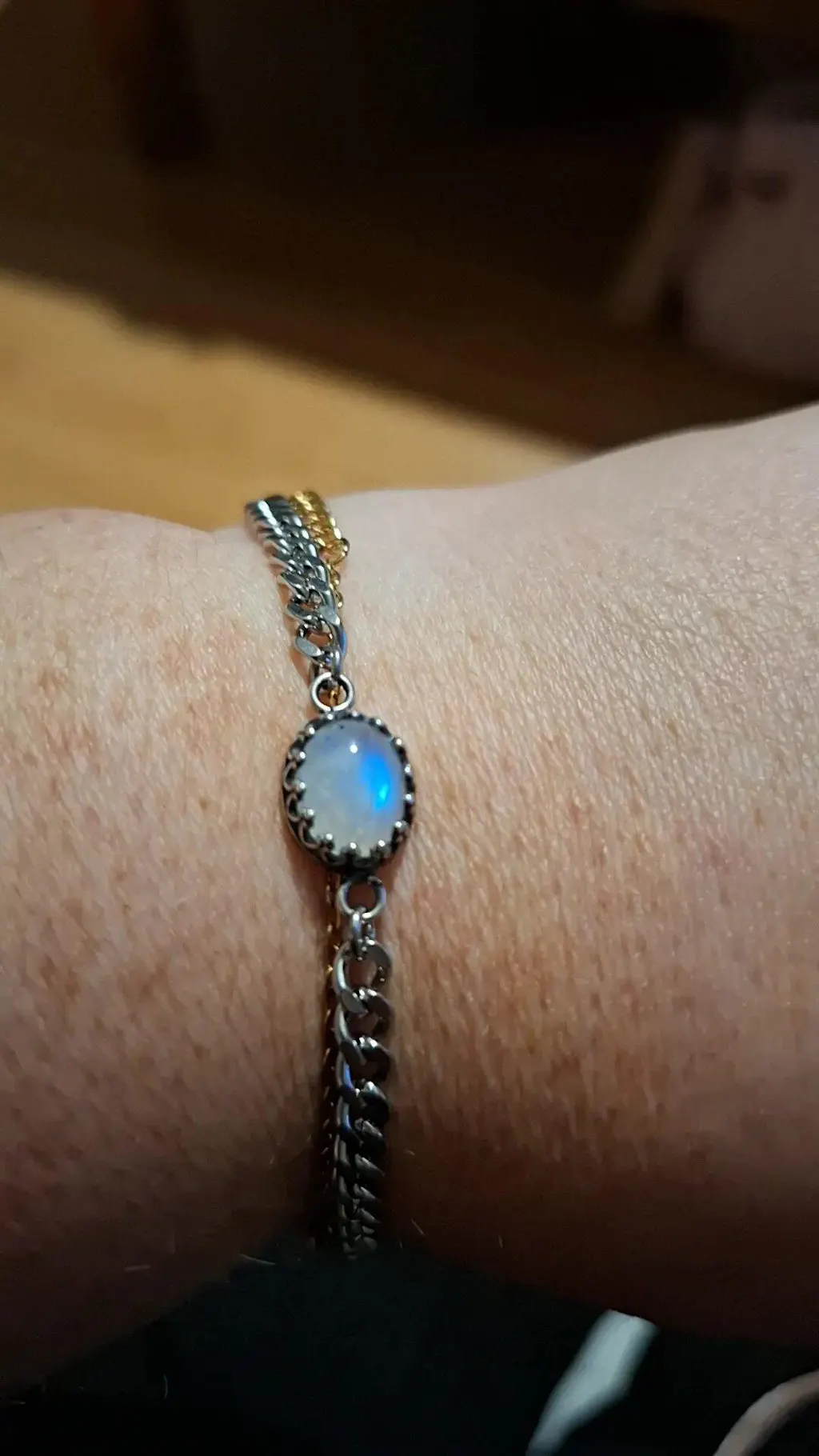 Unieke schakelarmband met een maansteen. Voor iedereen die een meer opvallende schakelarmband wilt! Ook verkrijgbaar is deze bijpassende ring!