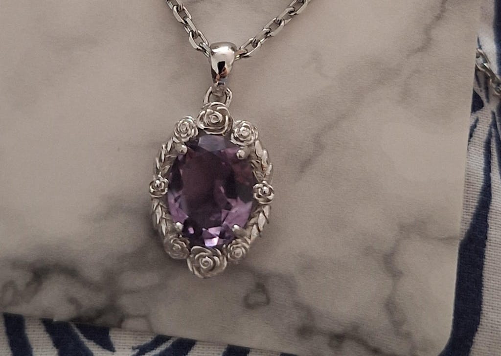 Laat je stijl bloeien met deze verfijnde ketting met een edelsteen in een roos hanger. De elegante roos, het ultieme symbool van liefde en schoonheid, omhult een glinsterende edelsteen die niet alleen de aandacht trekt, maar ook positieve energie uitstraalt.